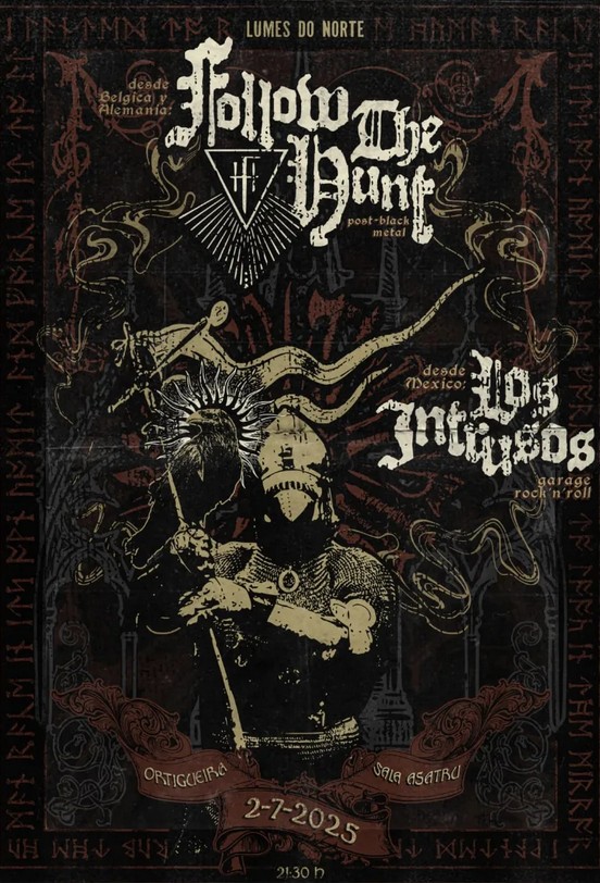 La noche del miércoles 2 de julio promete ser intensa en Ortigueira con un doble cartel que hará las delicias de los amantes del metal y el garage más crudo. La Sala Asatru acoge un concierto singular con dos propuestas internacionales de peso: Follow the Hunt, desde Bélgica y Alemania, y Los Intrusos, llegados desde México.